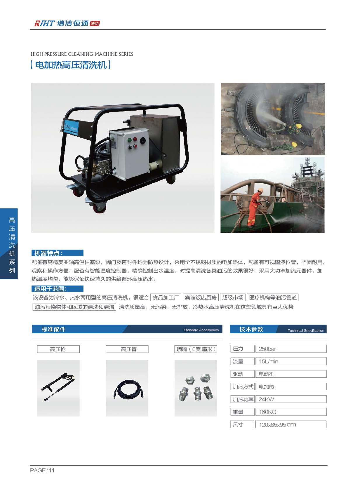 現(xiàn)在使用高溫高壓清洗機(jī)的用戶(hù)越來(lái)越多,主要用在清洗油污比較嚴(yán)重的場(chǎng)合,例如一些廠礦去的機(jī)械設(shè)備、油罐、車(chē)輛發(fā)電機(jī)等,用高溫高壓清洗機(jī)清洗這些頑固污漬效果會(huì)比冷水高壓清洗機(jī)好的多,高溫高壓清洗機(jī)也叫冷熱水高壓清洗機(jī),它既可以用冷水清洗,也可以用熱水清洗,是冷熱水兩用的,價(jià)格自然要比冷水高壓清洗機(jī)要高。高溫高壓清洗機(jī)有兩種類(lèi)型,一種是電加熱的,另一種是柴油加熱的,瑞潔恒通生產(chǎn)的電加熱型高溫高壓清洗機(jī)RJHT-2515就是一款設(shè)計(jì)精密、使用方便、能高效清潔的高溫高壓清洗機(jī),在使用時(shí)必須要注意以下幾點(diǎn):