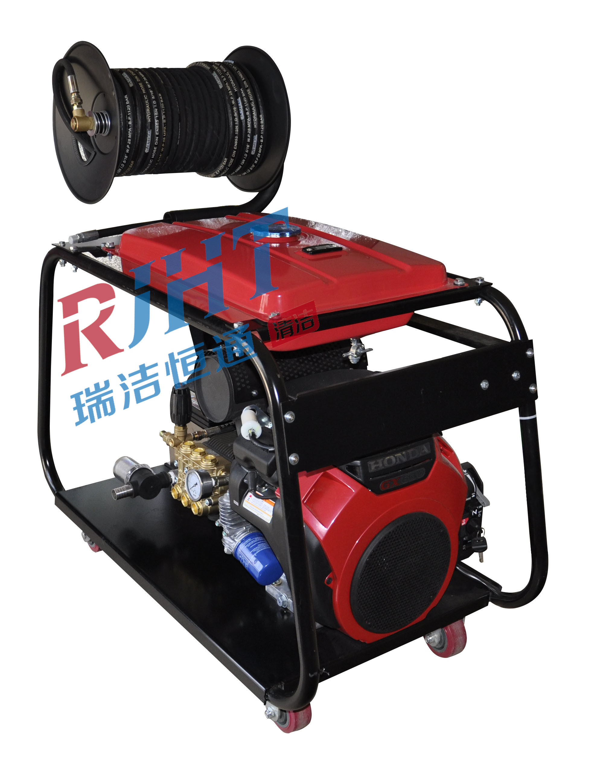 3、對(duì)于疏通小區(qū)的排水系統(tǒng)有一款非常適合的機(jī)器,那就是高壓管道疏通機(jī)RJHT-500,主要適用于管道內(nèi)直徑500mm以下的管道。它是以汽油機(jī)或者電機(jī)(三相電機(jī))為動(dòng)力,通過聯(lián)軸器傳動(dòng),帶動(dòng)三聯(lián)式高壓柱塞泵運(yùn)轉(zhuǎn),把自來水加壓到上百斤甚至幾百公斤,再通過特殊噴頭的噴孔打擊管道內(nèi)壁上的污垢、淤泥、地溝油等各種雜物。同時(shí)反沖洗下來帶出管外。從而達(dá)到徹底清洗的目的。這種設(shè)備體積小、動(dòng)力大、疏通清洗能力強(qiáng)、機(jī)動(dòng)靈活、易操作等優(yōu)點(diǎn)。