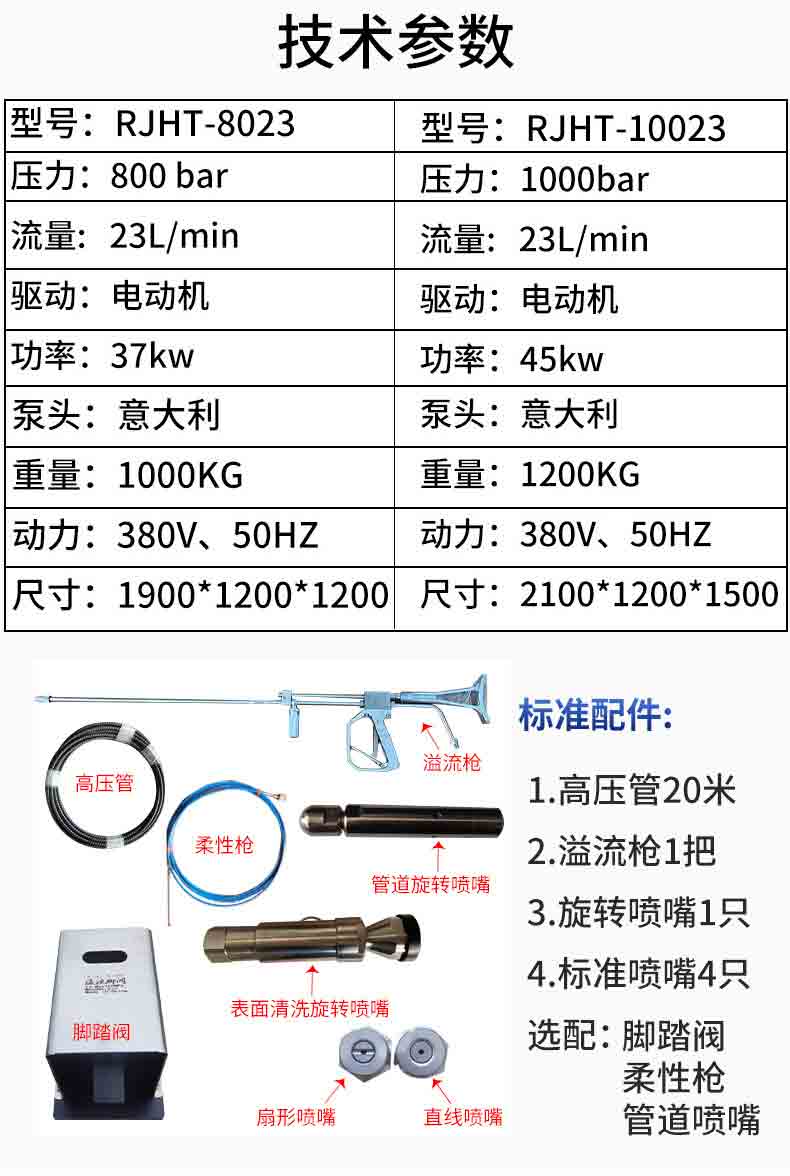 RJHT-8023型超高壓清洗機(jī),采用意大利進(jìn)口高壓泵,壓力調(diào)節(jié)裝置、安全控制閥、壓力表和過(guò)濾器等多種安全防護(hù)裝置,具有安全性高,使用操作穩(wěn)定等優(yōu)點(diǎn)。